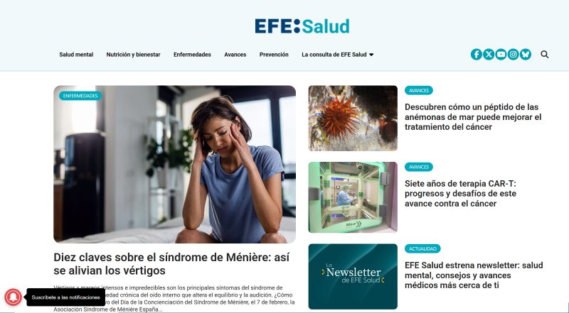 EFE Salud, el portal digital especializado en salud de la Agencia EFE, creado hace casi 14 años, presenta nueva imagen y estrena newsletter para seguir informando sobre hábitos de vida saludable y avances científico-médicos. El mismo rigor y la misma fiabilidad a través de una identidad visual cambiada.