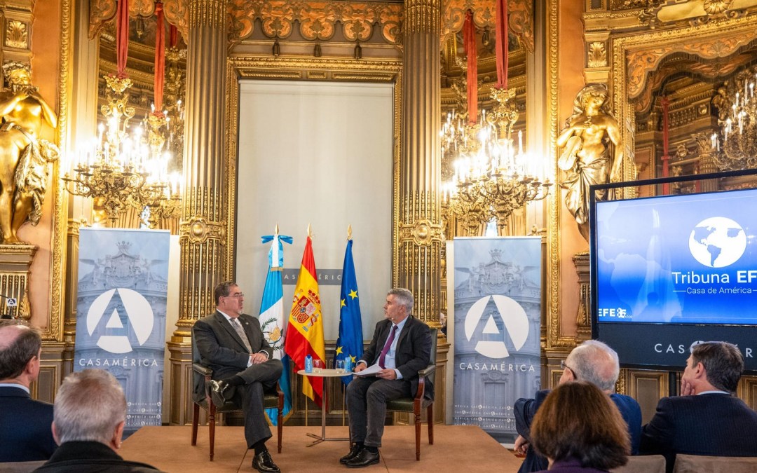 Durante la entrevista, enmarcada en la primera Tribuna que realiza el presidente de EFE en Casa de América, Arévalo señaló que su Gobierno combate el fenómeno de las pandillas «en el marco del pleno respeto de los derechos humanos» y apostó por mantener el diálogo a nivel técnico entre los países de Centroamérica para facilitar la integración regional en el ámbito económico y de los pueblos, a la espera de que el proceso pueda trasladarse al campo político y se mostró partidario de mantener el diálogo a nivel técnico entre los países de Centroamérica para facilitar la integración regional en el ámbito económico y de los pueblos, a la espera de que el proceso pueda trasladarse al campo político.