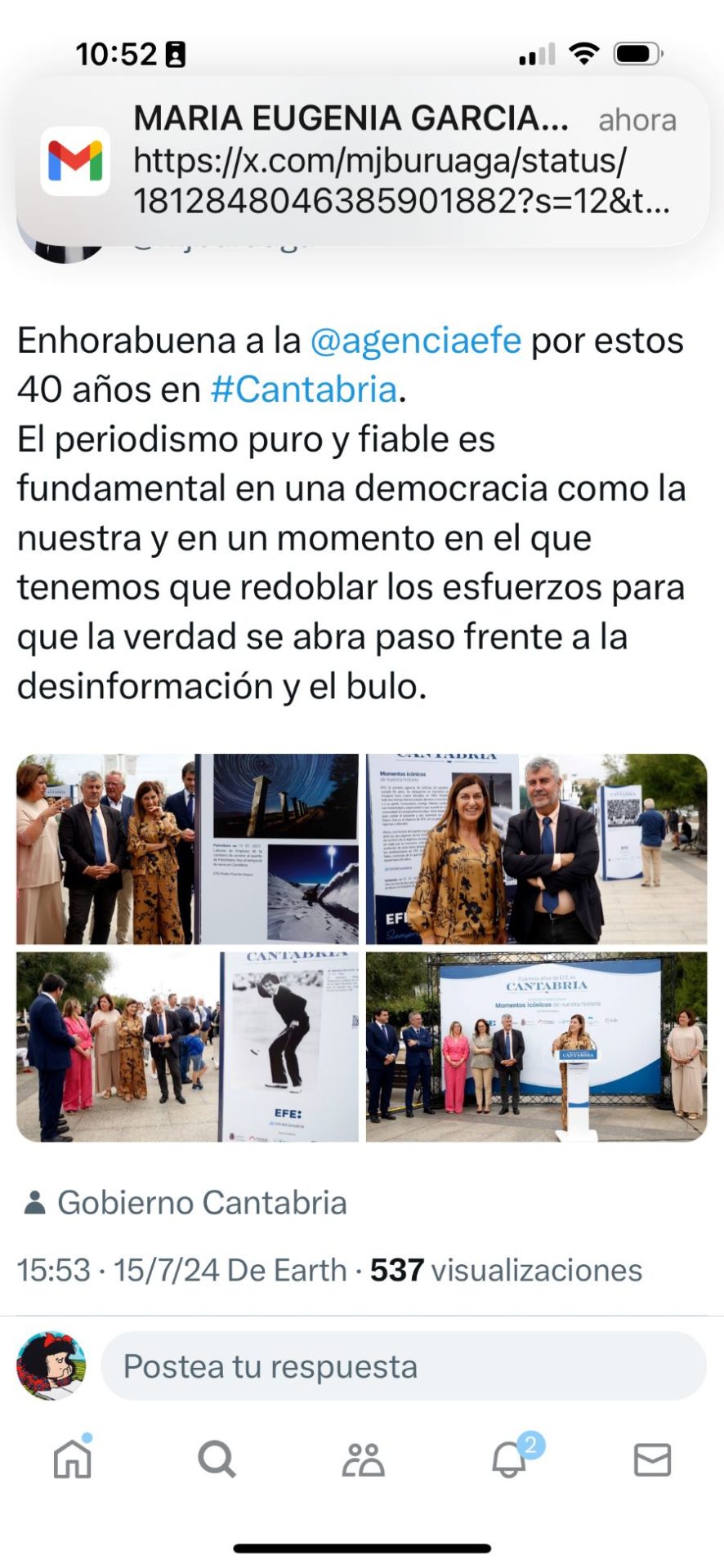 Durante todos estos años, ha asegurado Sáenz de Buruaga, EFE «ha estado siempre ahí, atenta a los cambios, involucrada con Cantabria, apoyando el talento de sus gentes y contando historias que hacen más grande esta tierra».