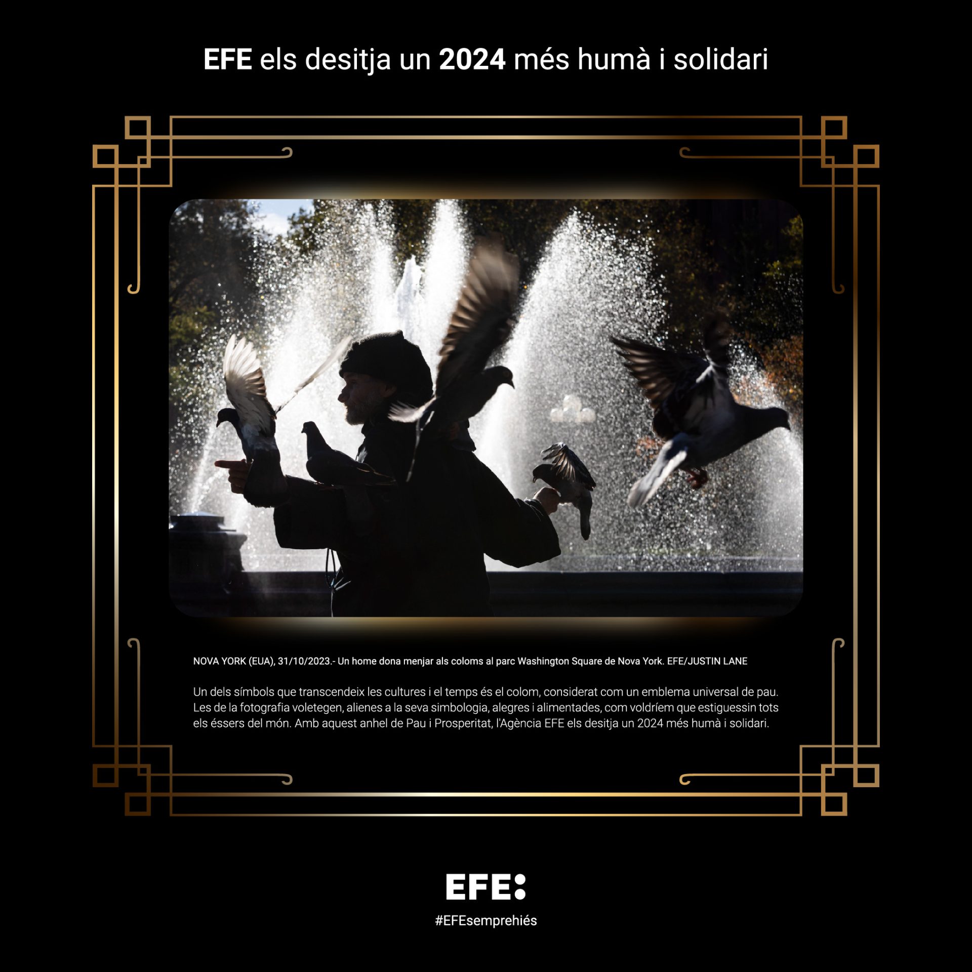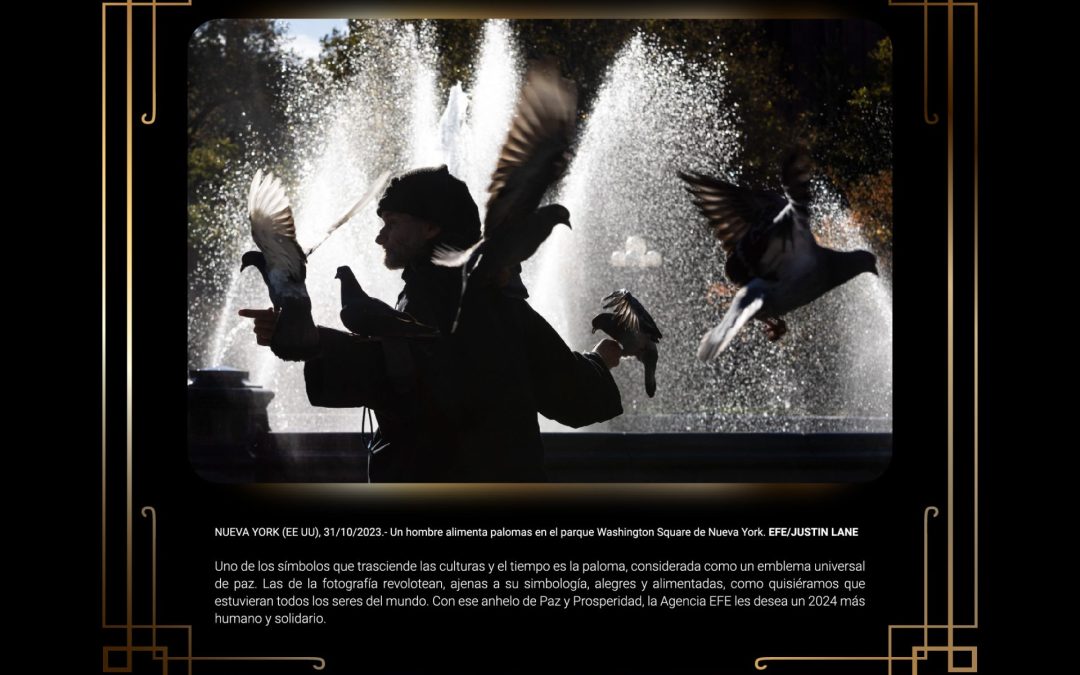 Recurrimos al profundo deseo de Paz en estas fechas de recogimiento y familia a través de unas palomas libres, captadas por el fotógrafo Justin Lane en Nueva York. Con ese anhelo de Paz, la Agencia EFE desea que 2024 sea más humano y solidario.