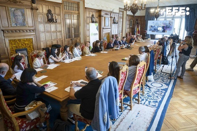Santander, 15/07/2025.- El presidente de la Agencia EFE, Miguel Ángel Oliver (c), interviene en el curso «Retos de la democracia ante la desinformación», que organiza la Universidad Internacional Menéndez Pelayo con profesionales de los medios para crear un espacio de diálogo y aprendizaje. EFE/ Pedro Puente Hoyos